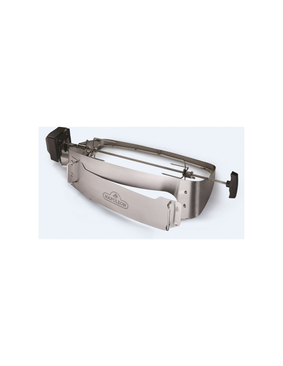 Prepara un pollo crujiente o una deliciosa pizza con este asador giratorio y horno para pizza especialmente diseñado para barbacoa portátil TravelQ de Napoleon. Este accesorio amplía el espacio de cocción debajo de la cuba de la barbacoa TravelQ y crea condiciones óptimas para una perfecta distribución del calor dentro del espacio de cocción. La brocheta de acero inoxidable puede contener fácilmente alimentos de hasta 5,5 kilos y darles la vuelta de manera uniforme. Al hornear pizza, es particularmente importante que haya alta temperatura en el horno. Para no tener que abrir la tapa al colocar la pizza, el anillo de ampliación del espacio de cocción tiene un práctico inserto con 2 asas que se puede quitar. El inserto evita que se escape demasiado calor cuando se retira o se coloca la pizza en el horno. Este accesorio no es la solución ideal solo para hornear pizzas, sino también para hornear pan, pasteles, bollería, foccacia y baguettes.