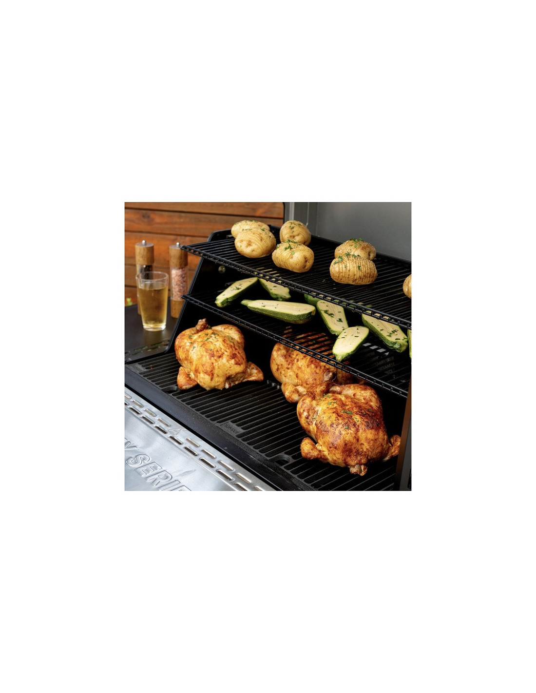 - Bandeja de cenizas y recipiente de grasa extraíbles.