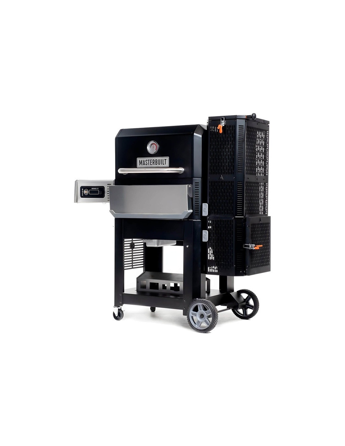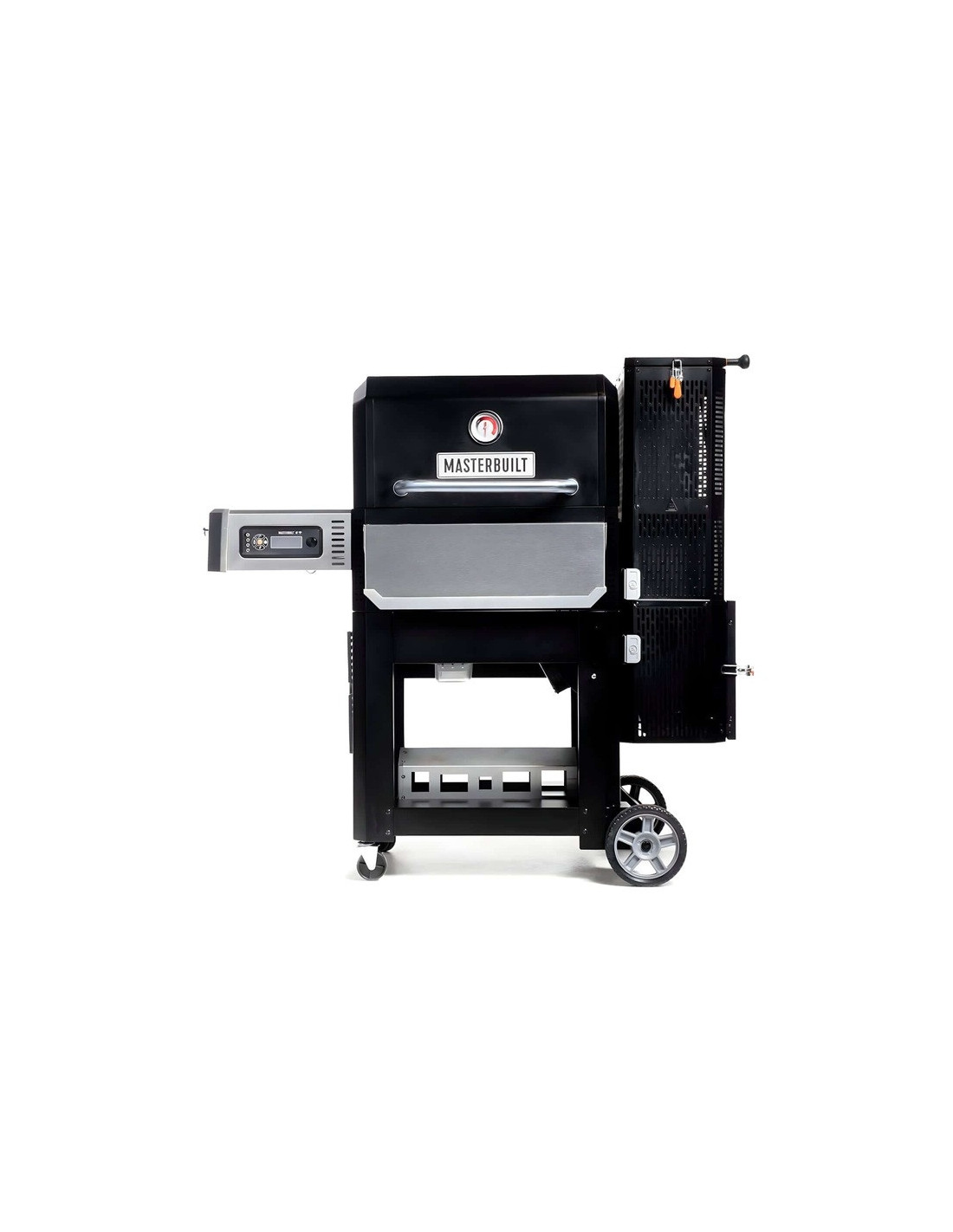 La tolva de carbón tiene capacidad para 4,5 kg de carbón en trozos o 7 kg de briquetas para un máximo de 10 horas de uso y la gravedad asegura que tengas combustible constante en el fuego. Las parrillas reversibles de hierro fundido para ahumar y dorar y las rejillas para calentar y ahumar suman un total de 5.160 centímetros cuadrados de espacio para cocinar. Podrá ahumar, asar a la parrilla, dorar, hornear, asar y mucho más.
