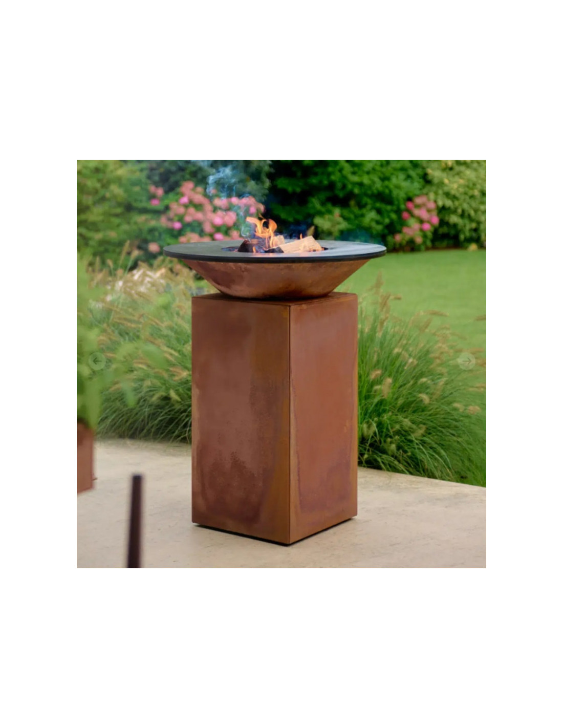 La base y el cuenco están hechos de acero resistente a la intemperie. Gracias a un proceso químico, el acero Corten dispone de una capa protectora en su superficie que aumenta su resistencia a la corrosión atmosférica en comparación con otros aceros. Hace que los productos OFYR, a medida que vayan apareciendo signos de corrosión, obtendrán unas características como si se tratara de unas auténticas estatuas clásicas. La capa natural de corrosión protege contra la perforación por oxidación.