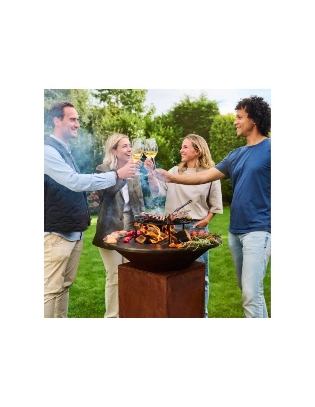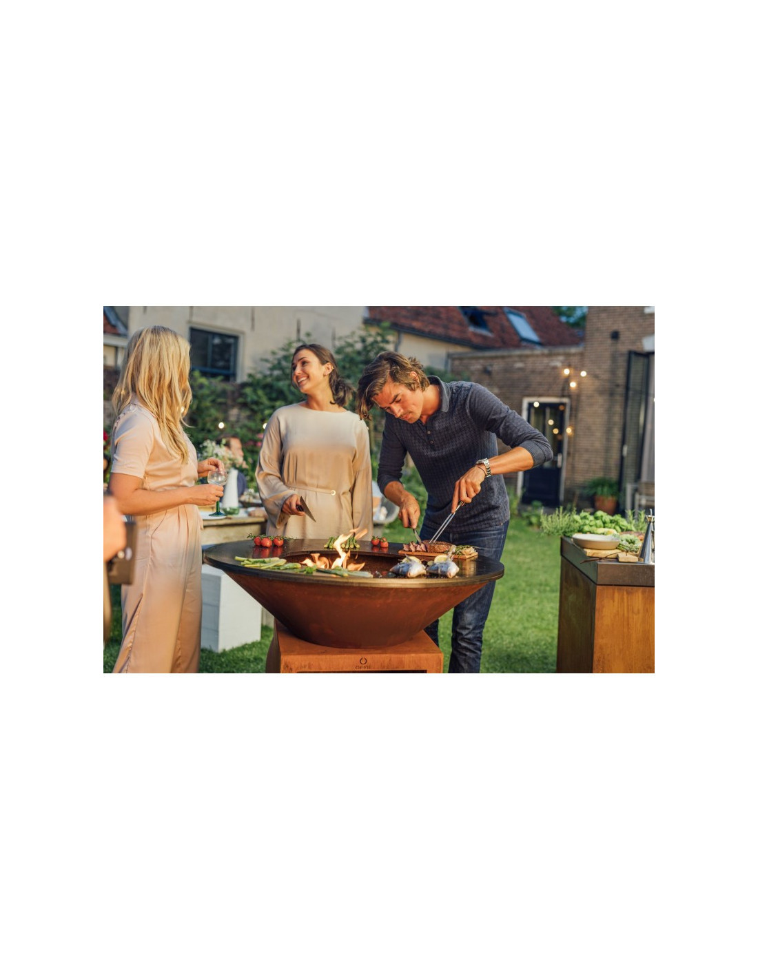 El OFYR 75 Corten es el modelo básico de la colección OFYR. Tiene un diseño práctico y compacto que se adapta perfectamente a cualquier jardín o patio. Esta unidad de cocina cuenta con una placa Airflow: un innovador sistema de flujo de aire que mejora la combustión de la leña y limita la formación de humo. El OFYR 75 Corten tiene capacidad para 4 a 6 personas, lo que lo hace ideal para pequeñas reuniones familiares y para cocinar a diario. Con su tamaño compacto, este modelo es ideal para espacios exteriores más pequeños.