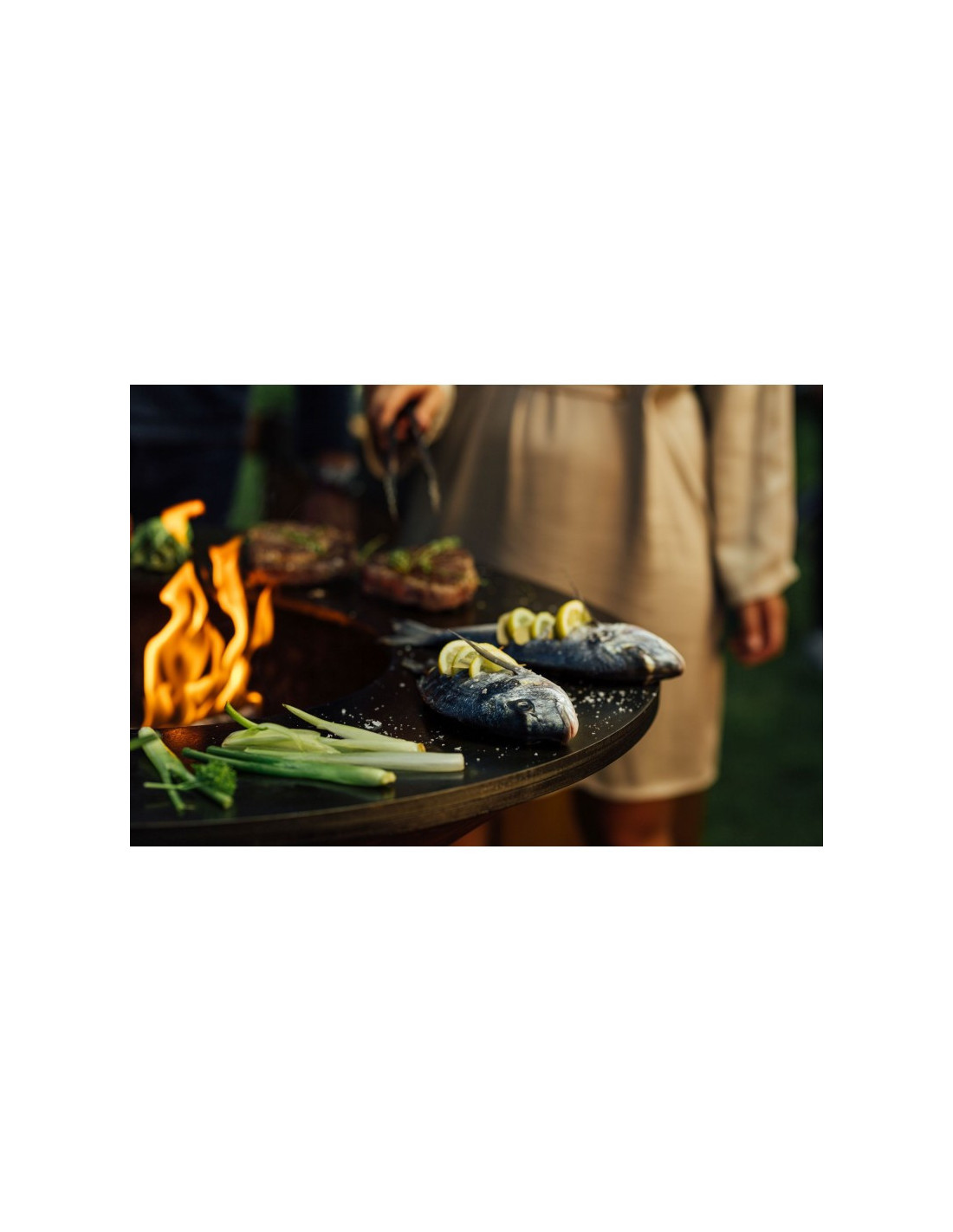 El Acero Corten es resistente y duradero, se puede dejar a la intemperie durante todo el año y necesita muy poco mantenimiento. Además de resultar atractivo a la vista, su característica forma de cono permite que el aire circule, de forma que, con la madera seca adecuada, se puede avivar el fuego en unos minutos. La barbacoa OFYR se calienta a gran velocidad, irradiando calor a una zona de varios metros para crear un acogedor círculo de calidez durante todo el año.