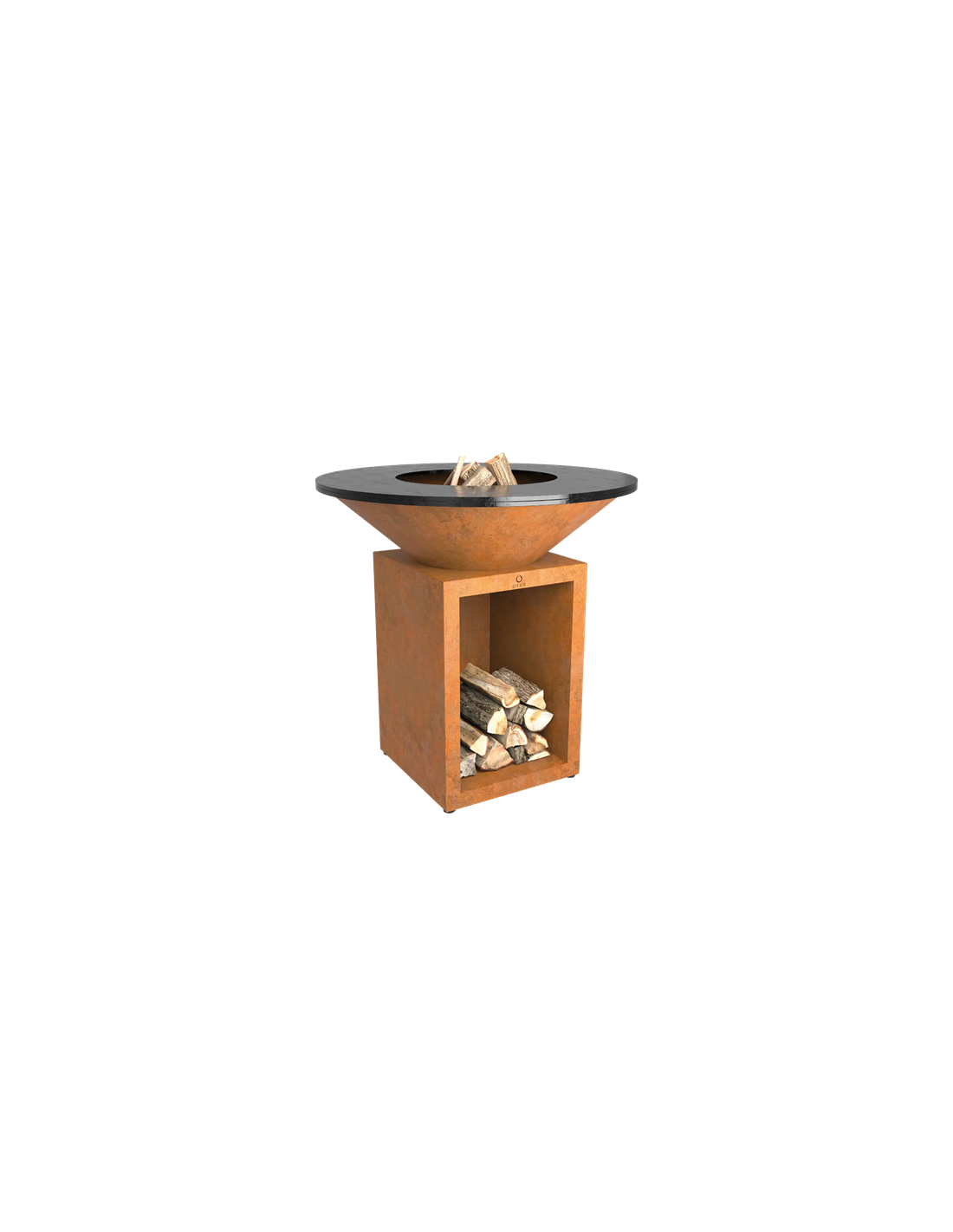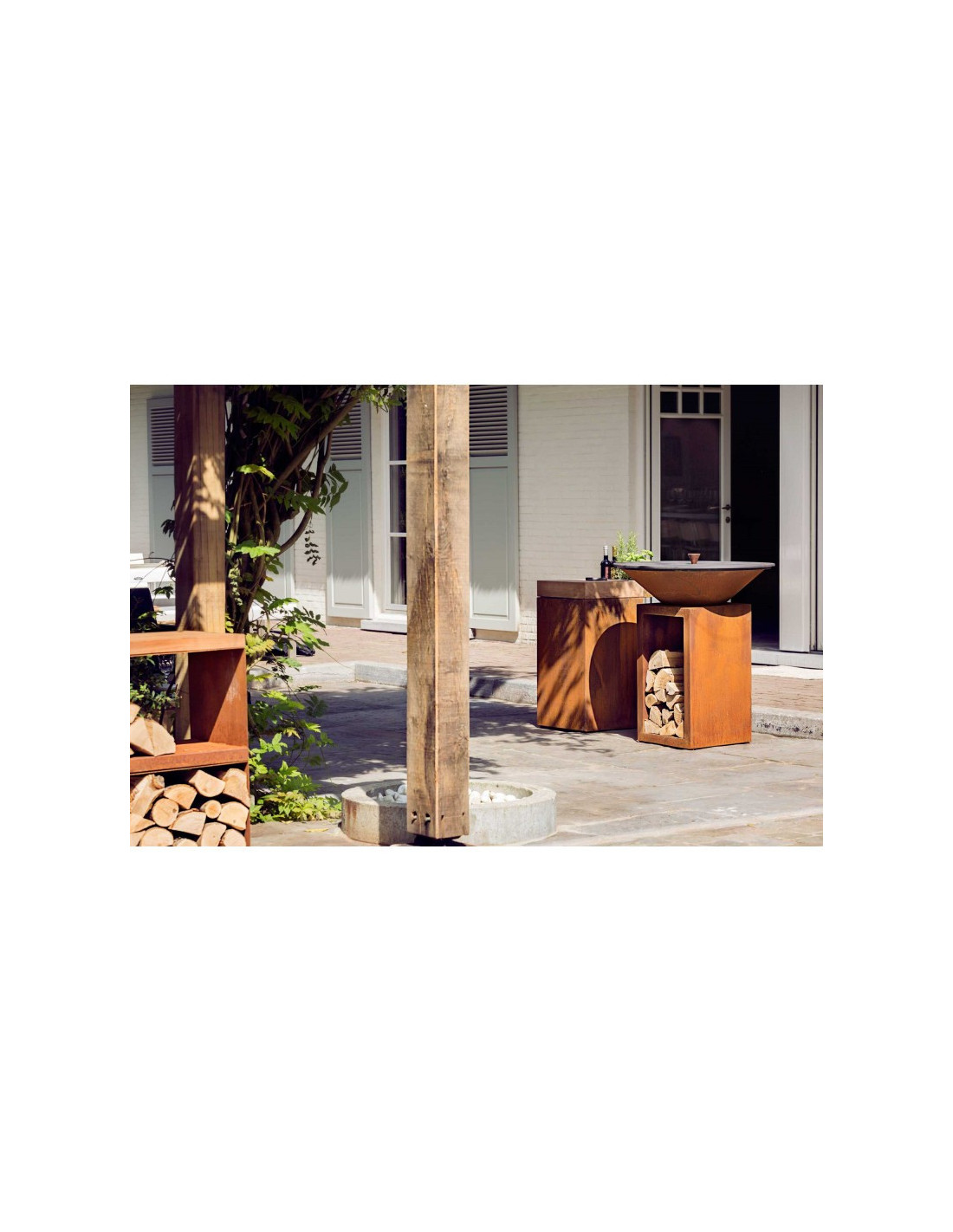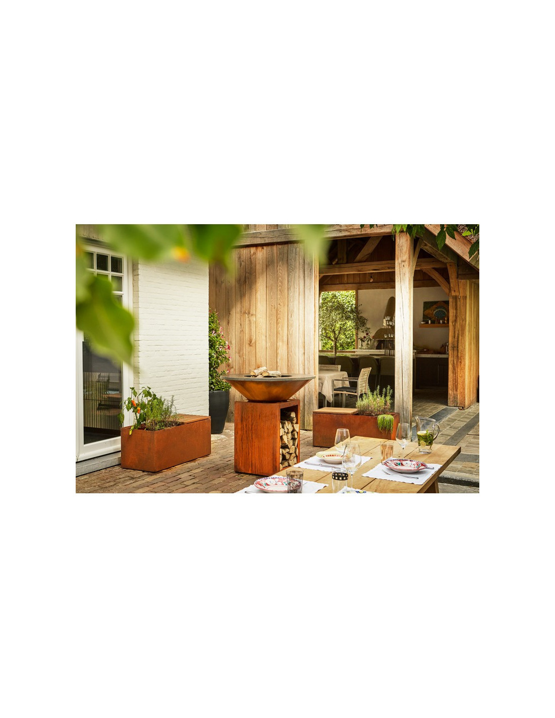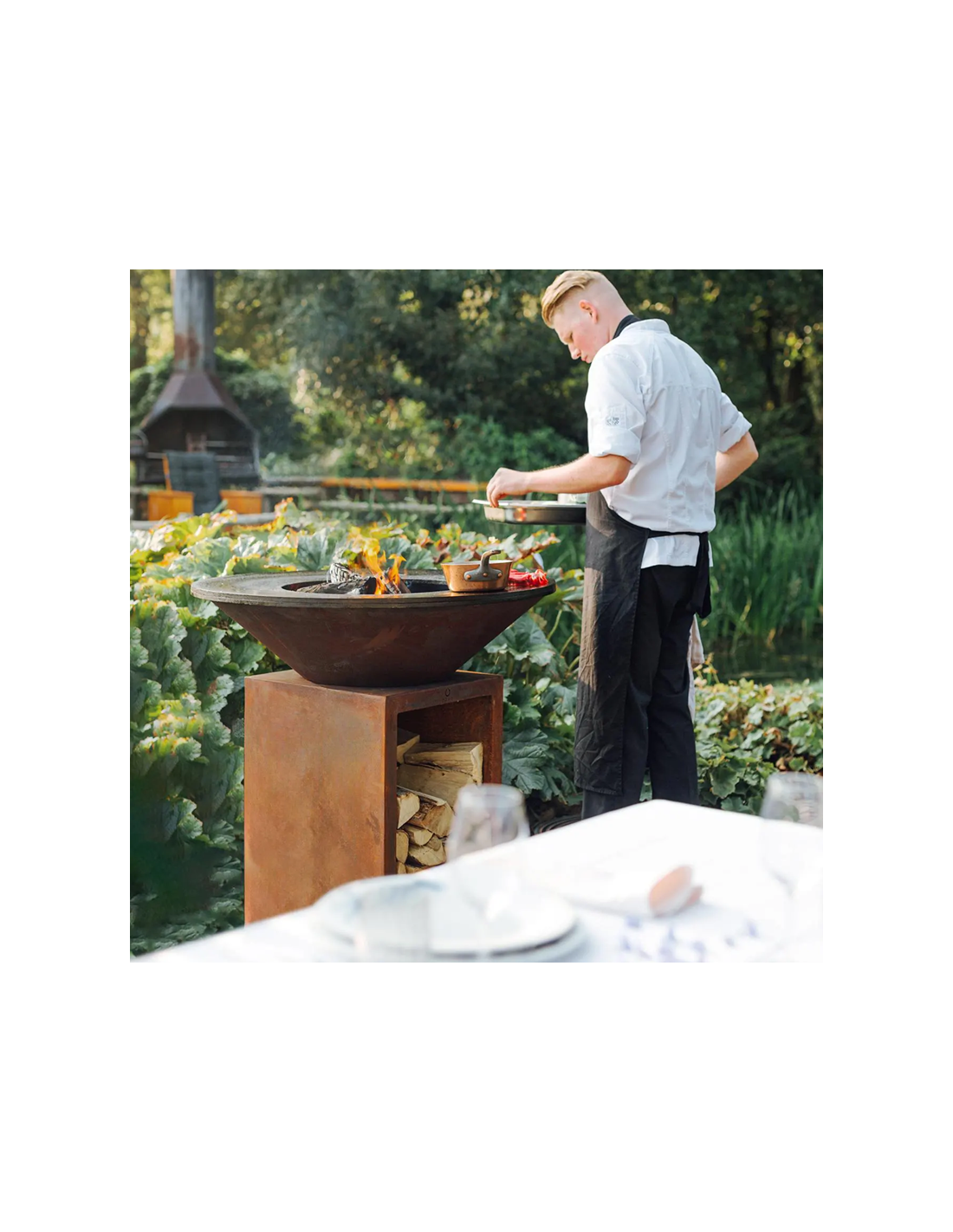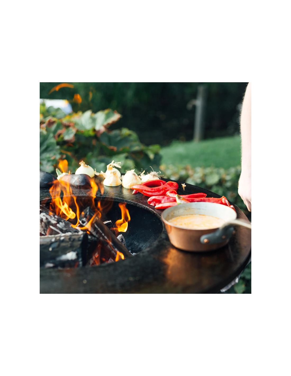 La clave del atractivo multifuncional de la barbacoa de leña Ofyr reside en la simplicidad y larga duración de los materiales utilizados en su fabricación. El Acero lacado en negro es resistente y duradero, se puede dejar a la intemperie durante todo el año y necesita muy poco mantenimiento. Además de resultar atractiva a la vista, su característica forma de cono permite que el aire circule, de forma que, con la madera seca adecuada, se puede avivar el fuego en unos minutos. La barbacoa OFYR se calienta a gran velocidad, irradiando calor a una zona de varios metros para crear un acogedor círculo de calidez durante todo el año.