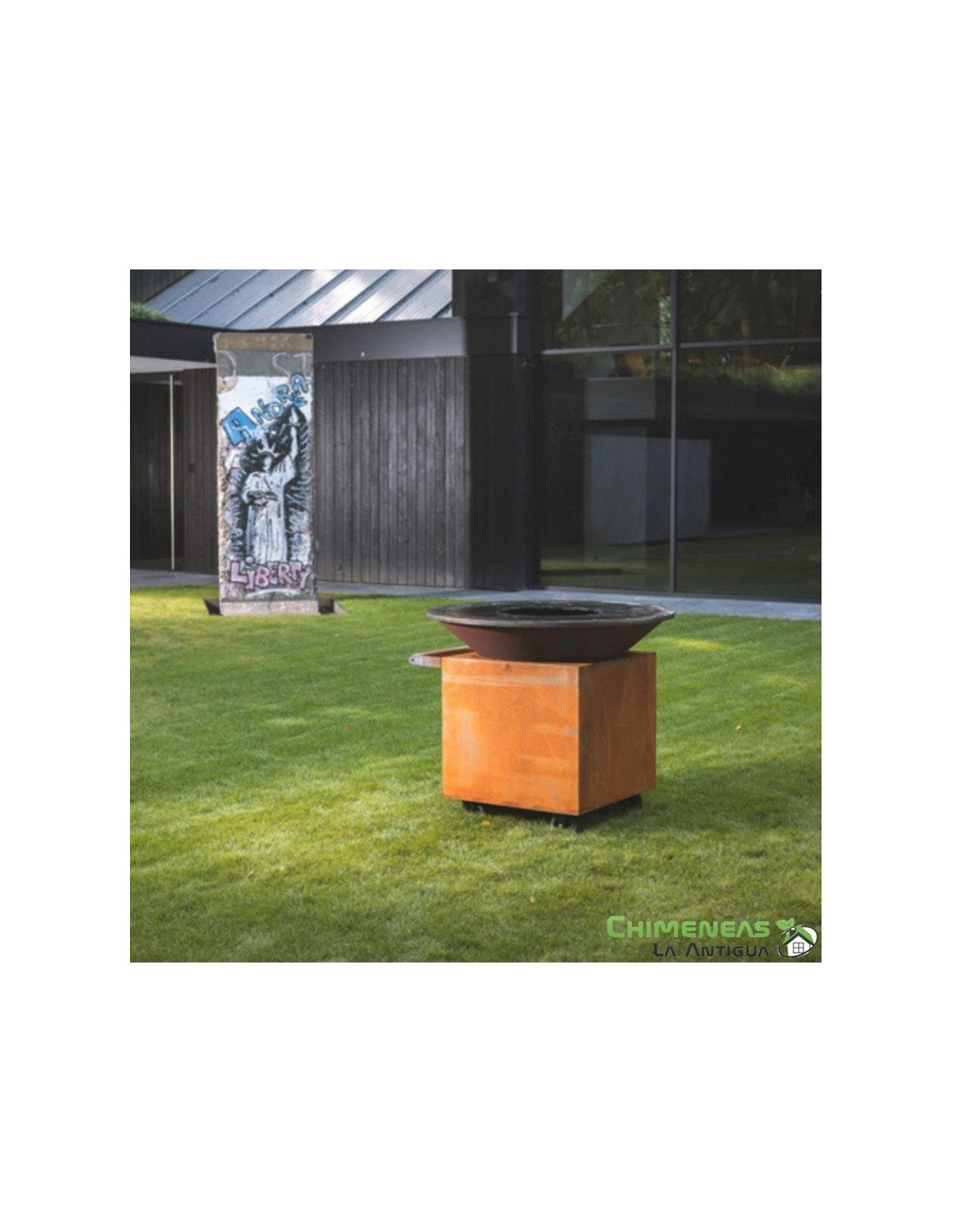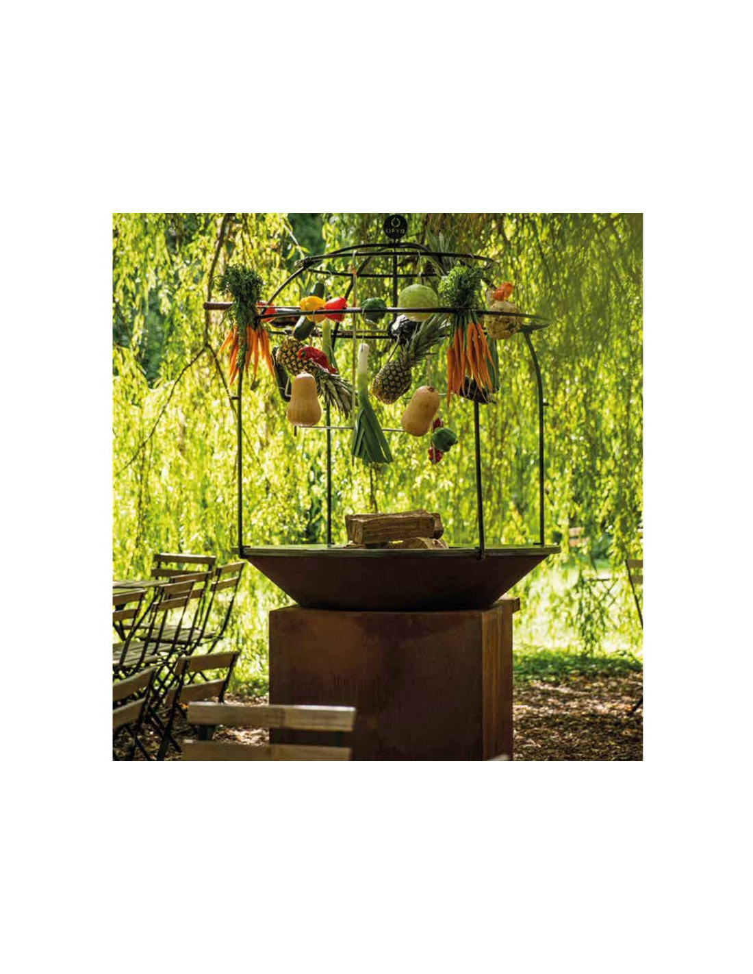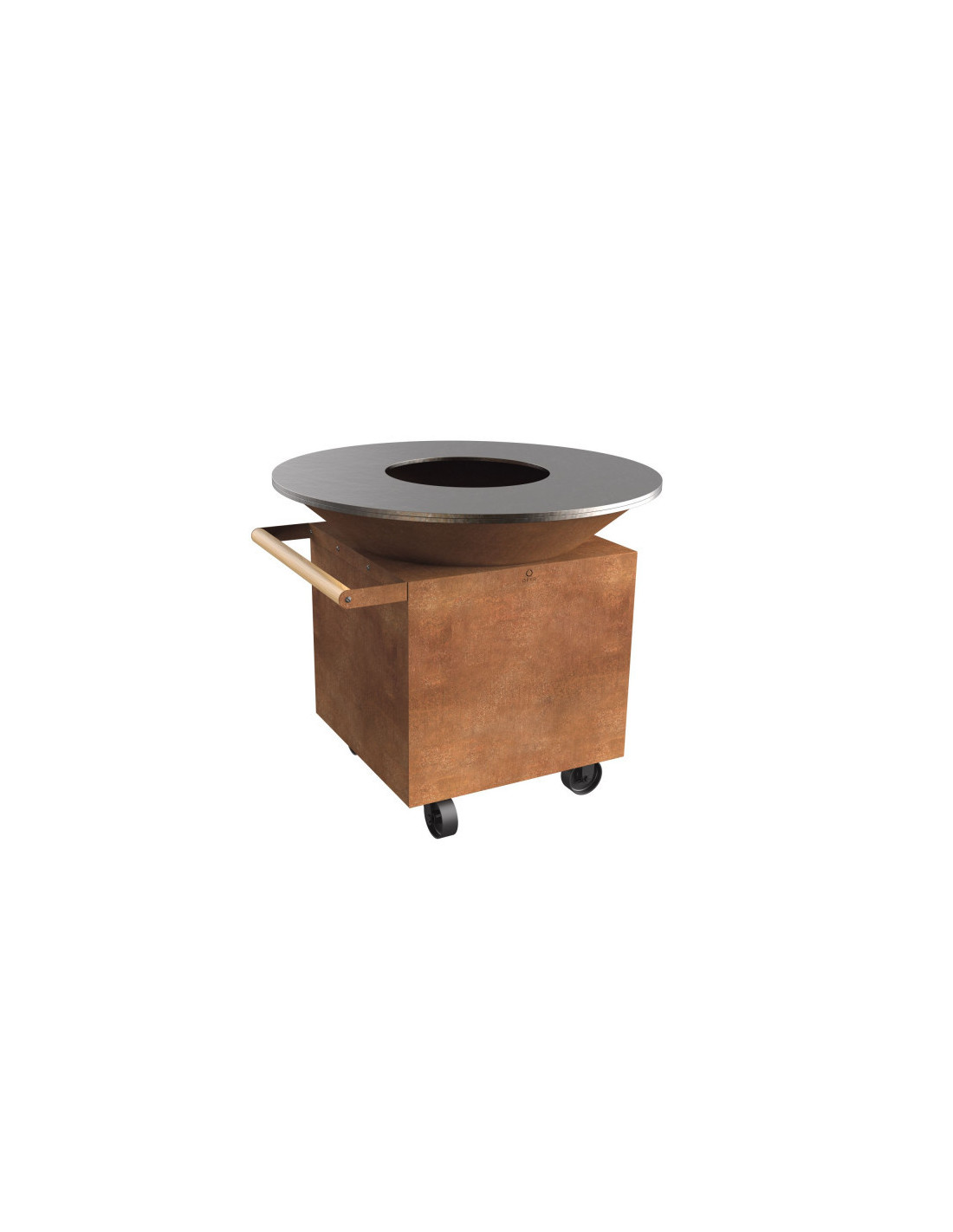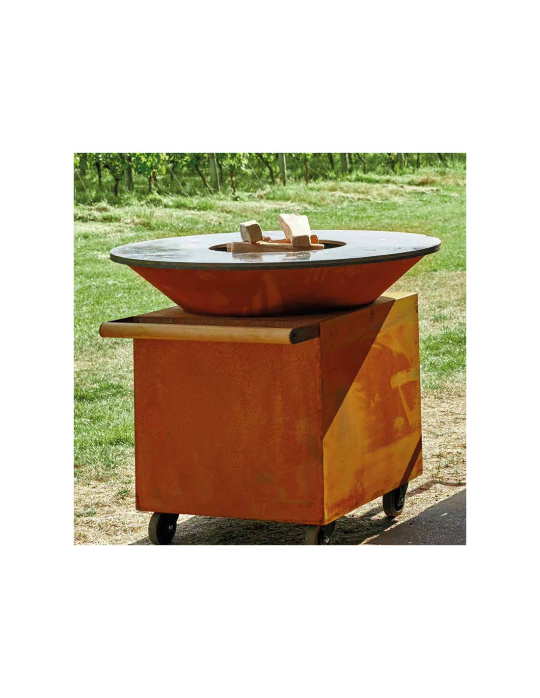 El cono tiene una capacidad de combustión de aproximadamente 4 a 5 horas antes de que sea necesario retirar las cenizas. Gracias a sus ruedas y asa, la unidad de cocina es fácil de mover por el espacio exterior. Combínela con la jaula OFYR para crear una unidad de cocina al aire libre perfecta para eventos y uso profesional.