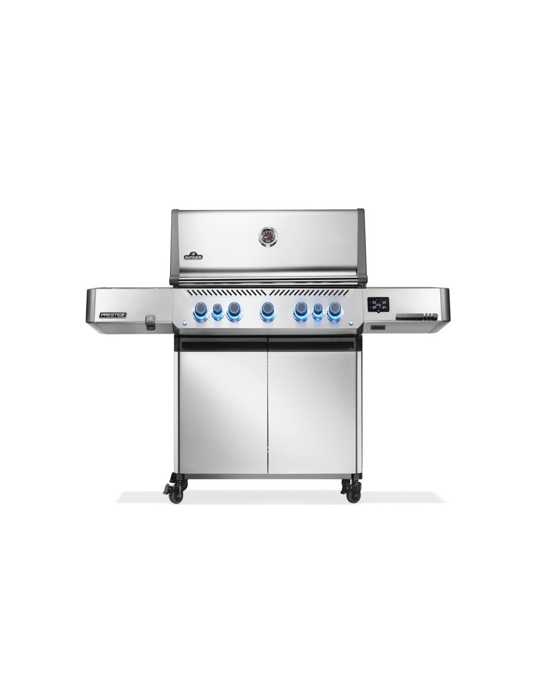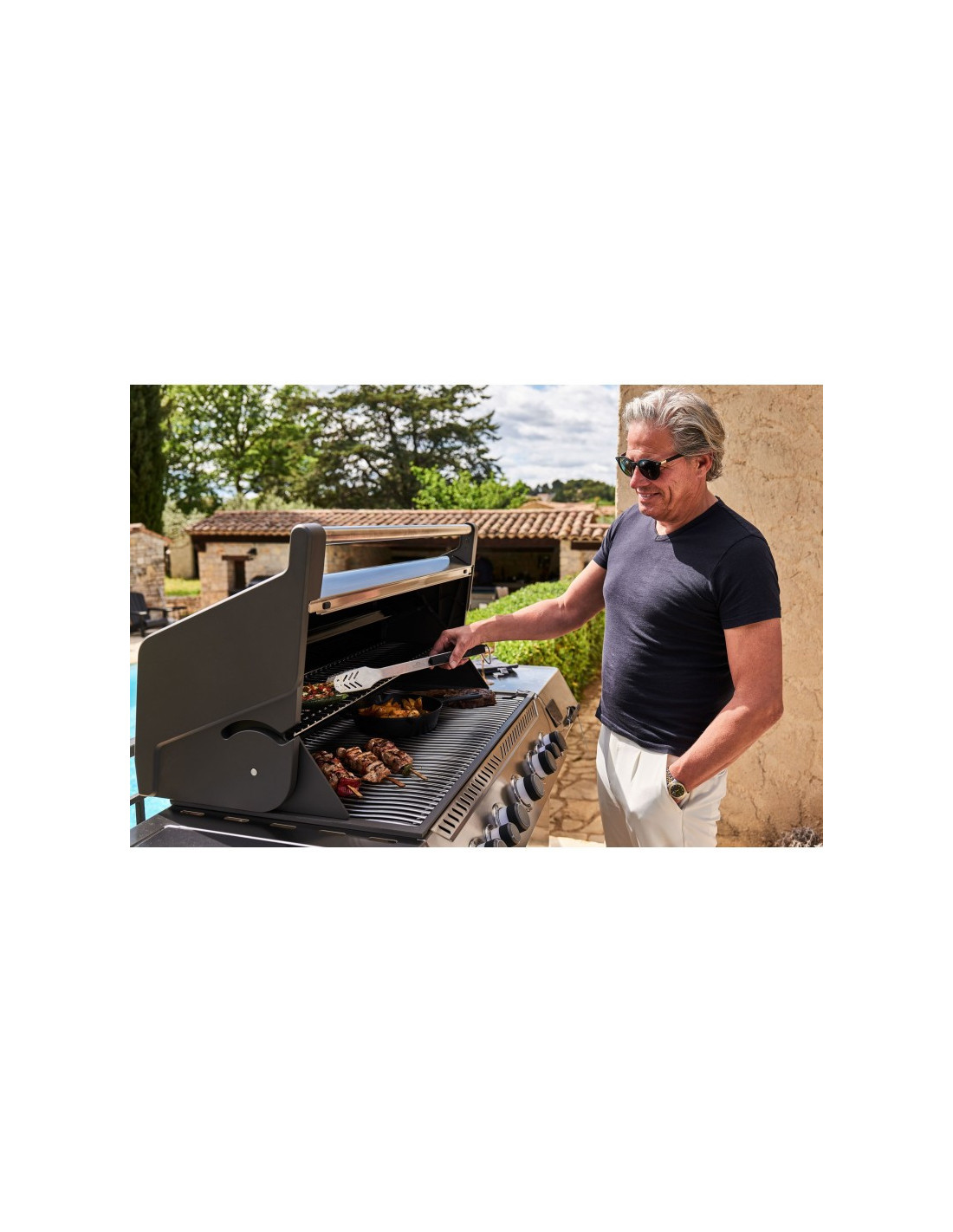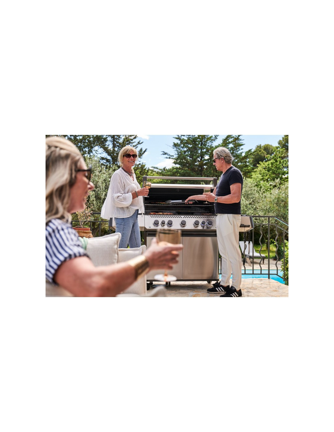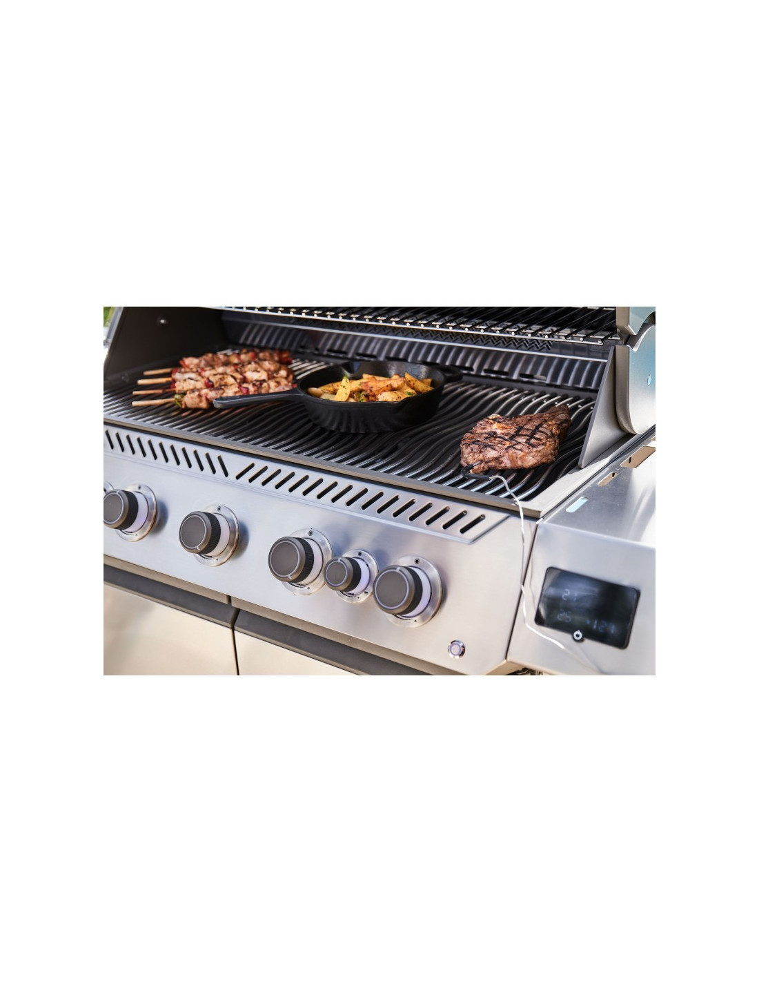 La barbacoa de gas Prestige 665 de acero inoxidable con quemadores infrarrojos traseros y laterales es una evolución de nuestra icónica barbacoa que le brinda ahora más que nunca una excelente experiencia de cocción a la parrilla. Gracias a una novedosa conectividad inalámbrica, controlará en todo momento desde su teléfono el proceso de cocción de los alimentos que esta cocinando en su barbacoa, con monitorización de temperaturas y alertas inmediatas dispondrá de la mejor tecnología para cocinar. El potente quemador trasero para el asador y el fogón lateral infrarrojo de la estación de sellado más grandes mejoran el rendimiento de la barbacoa. Las mandos de control led se iluminan para disfrutar la parrilla durante la noche, e incluyen la función SafetyGlow™ que ilumina de color rojo el botón de cada quemador cuando el gas está encendido para mayor seguridad. El estante plegable permite mantener el orden y los ganchos para utensilios ocultos brindan mayor espacio de preparación. Disfrute del diseño moderno y elegante y de los métodos de cocción únicos que ya adora con esta irresistible barbacoa de gas Prestige 665.