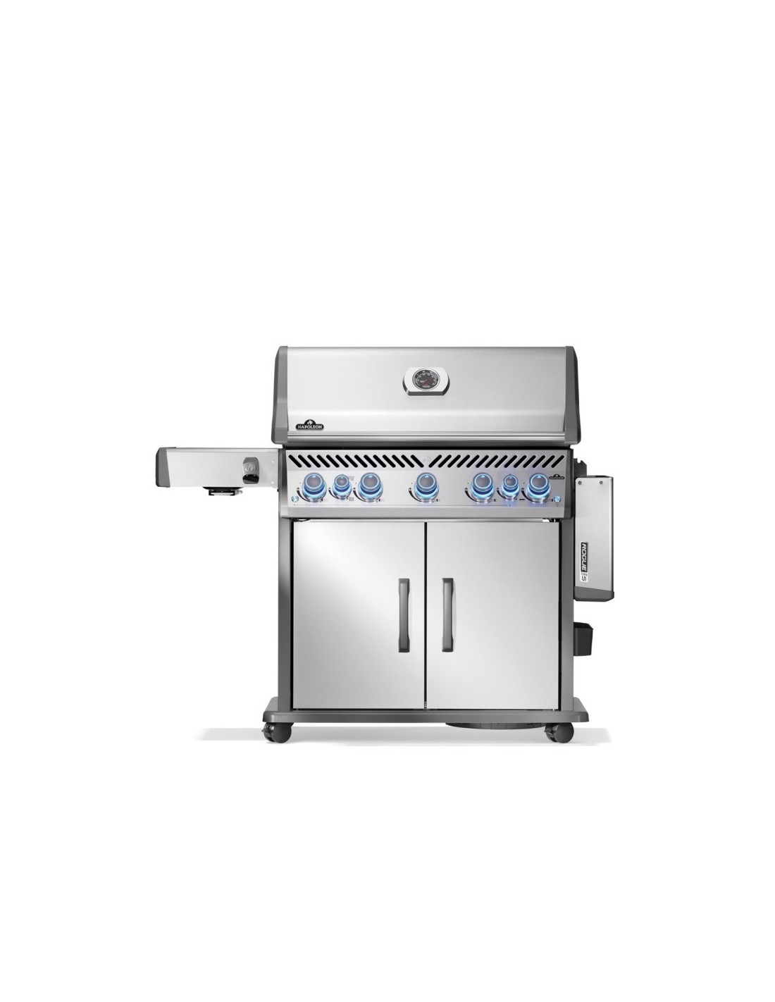 Cuando las características premium se combinan con la excelencia, se obtiene la barbacoa Rogue® PRO-S 625 de gas. Fabricada en acero inoxidable nos ofrece un nivel insuperable en cuanto a calidad de acabados. Elabore comidas suculentas con el quemador trasero infrarrojo del asador y utilice el quemador lateral infrarrojo grande de la estación de sellado para preparar guarniciones y salsas con calidad de restaurante o sellar el filete perfecto. Las emblemáticas rejillas para cocinar WAVE™ con forma de onda proporcionan calor uniforme y evitan que la comida se caiga, las placas de sellado de acero inoxidable y doble nivel vaporizan lo que gotea de los alimentos, devolviendo el aroma y manteniendo jugosos nuestros alimentos. Su alta temperatura elimina los residuos lo que permite mantener la parrilla impecable. Los botones de control ergonómicos cuentan con el encendido automático Jetfire® que permite el encendido del quemador simplemente girando el botón. además función SafetyGlow ilumina en rojo el aro del botón cuando se enciende un quemador para que el funcionamiento sea seguro y no demande esfuerzo. Un conveniente estante lateral plegable permite ahorrar espacio y las ruedas con fácil bloqueo facilitan el traslado. La asombrosa y duradera estructura de acero inoxidable es fácil de mantener y le permite usar la parrilla en cualquier ambiente. Mejore su experiencia de asar al aire libre con calidad y estilo superiores. Prepárese para la mejor experiencia a la parrilla con la Rogue® PRO-S.