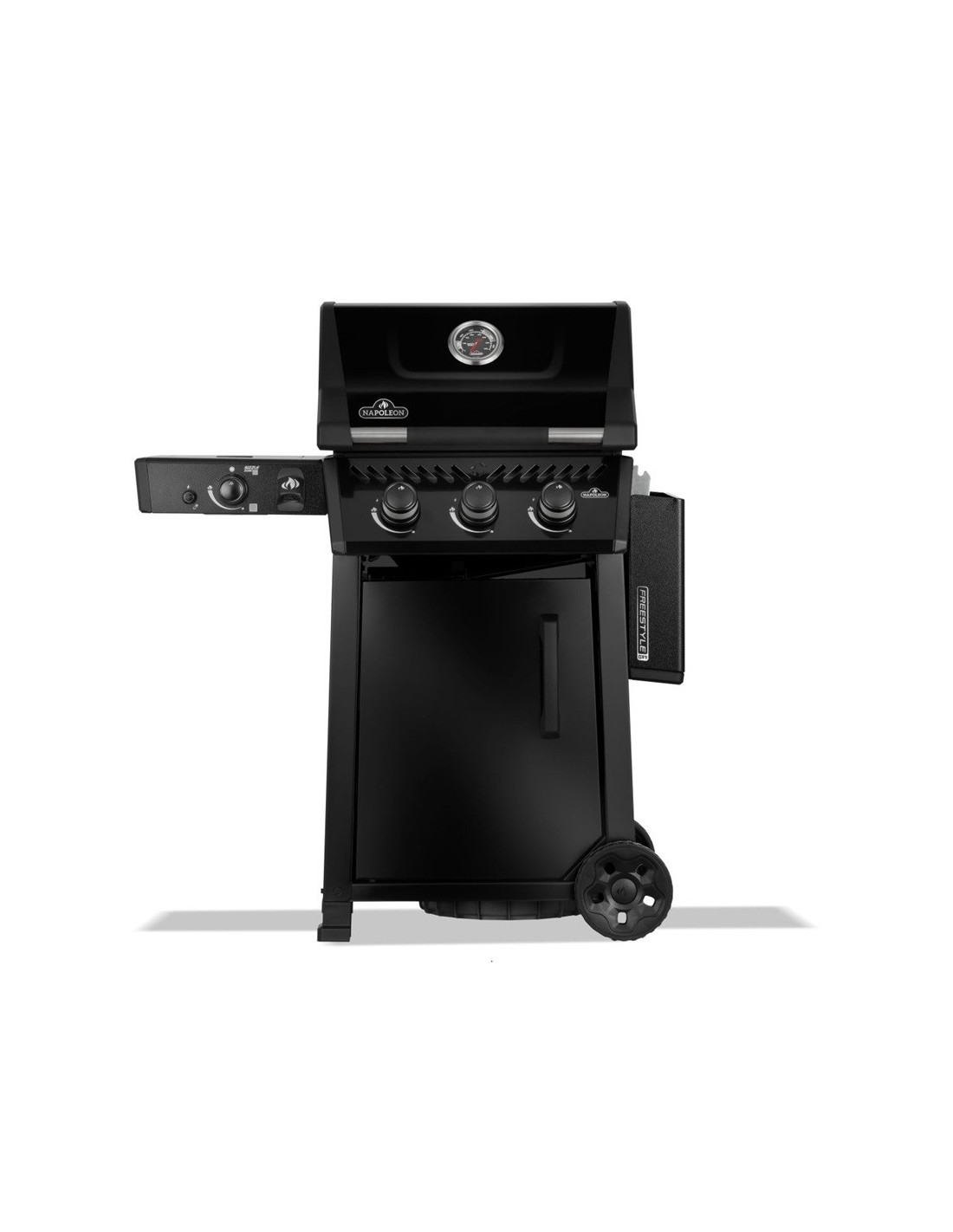 La Napoleón Freestyle™ PRO 365 ofrece alto rendimiento en un diseño compacto, ideal para patios, casas adosadas y pequeños jardines traseros. También incluye el potente quemador lateral infrarrojo SIZZLE ZONE® con el sello de calidad indiscutible de Napoleon para lograr sellados al estilo de restaurante en segundos. Cocinar es muy fácil con el sistema de encendido JETFIRE™, con el calor uniforme de los quemadores de acero inoxidable duraderos y todo supervisado con el termómetro ACCU-PROBE™. Los estantes plegables con ganchos para utensilios integrados y abridor de botellas permiten tener todo a mano sin ocupar espacio. Las resistentes ruedas facilitan el traslado y el acabado negro elegante aporta un estilo que perdura en el tiempo. La Freestyle™ PRO es compacta, práctica y versátil, y hace que la barbacoa sea una experiencia mágica en cualquier lugar.