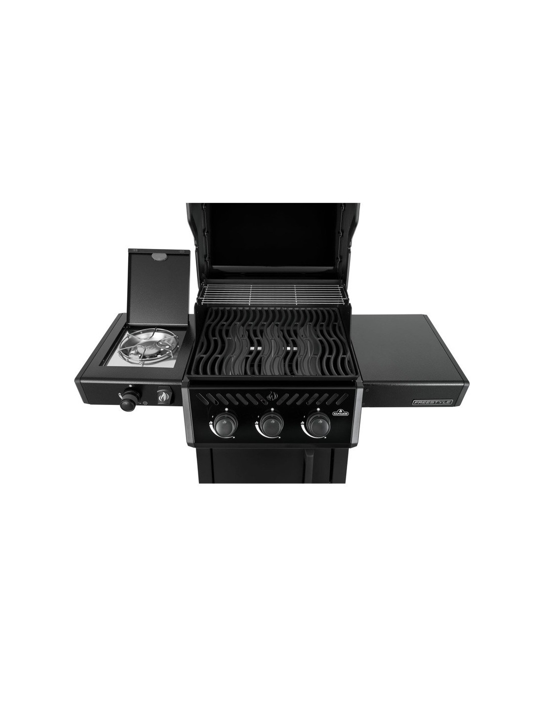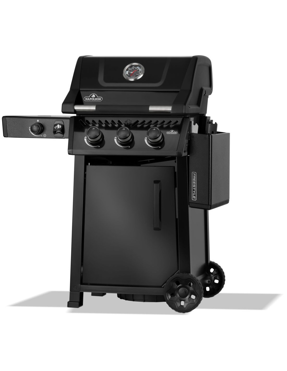 La barbacoa de gas propano Freestyle™ 365 con quemador lateral tipo horno es un asador compacto con características premium y un valor insuperable. Incluye el sistema de encendido inmediato JETFIRE que, mediante una llamarada, permite encender los quemadores principales fácilmente y sin intentos fallidos. Logre el sellado perfecto con las rejillas de hierro fundido con esmalte porcelánico. Los tres quemadores de acero inoxidable emiten calor uniforme que se controla y supervisa fácilmente mediante el medidor de temperatura incorporado. Use el quemador lateral tipo horno para preparar guarniciones mientras cocina. Las ruedas reforzadas permiten transportar esta parrilla a donde lo necesite y los estantes laterales de fácil plegado, con ganchos para utensilios y un destapador, hacen que la Freestyle™ se adapte a su estilo de vida y su espacio.